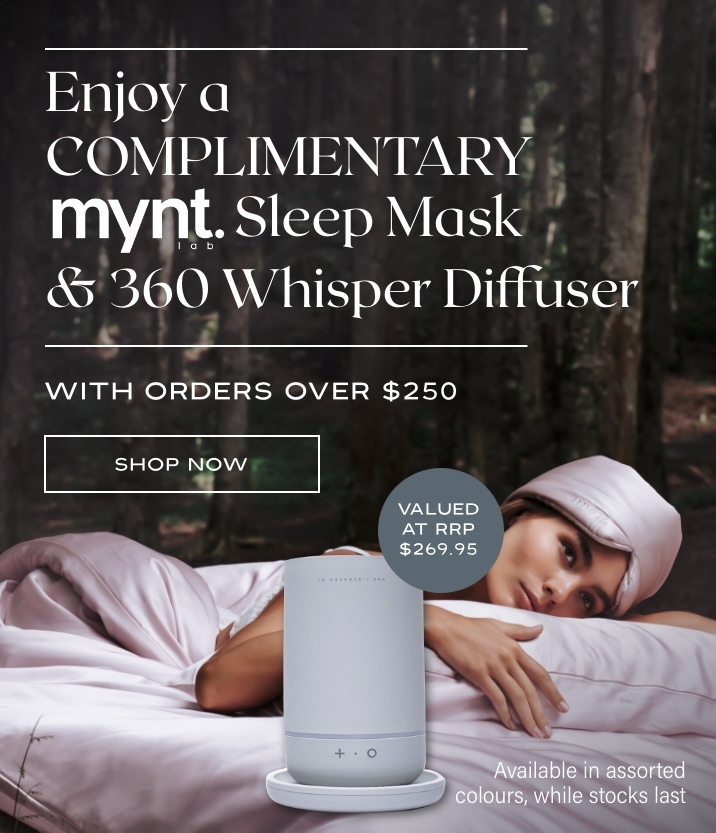Members-only offer: Receive a free MYNT Sleep Mask (colour selected at random) and In Essence 360 Whisper when you spend $250 or more in a single transaction online.
